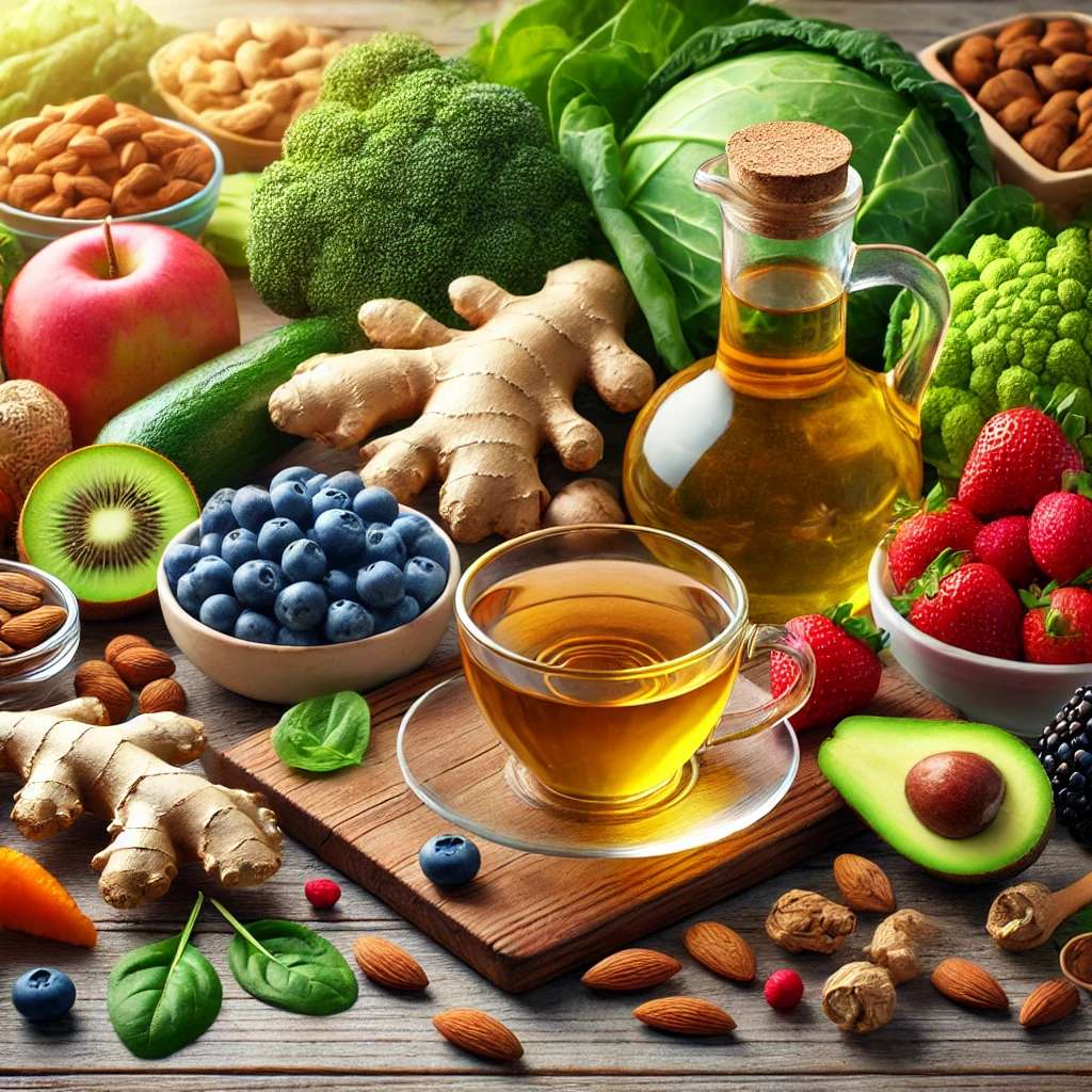 녹차에는 카테킨(Catechin)이라는 강력한 항산화 물질이 풍부해 염증을 줄이고 신체를 해독하는 데 도움을 줍니다. 특히 만성염증으로 인한 심혈관 질환 예방에 유용합니다.